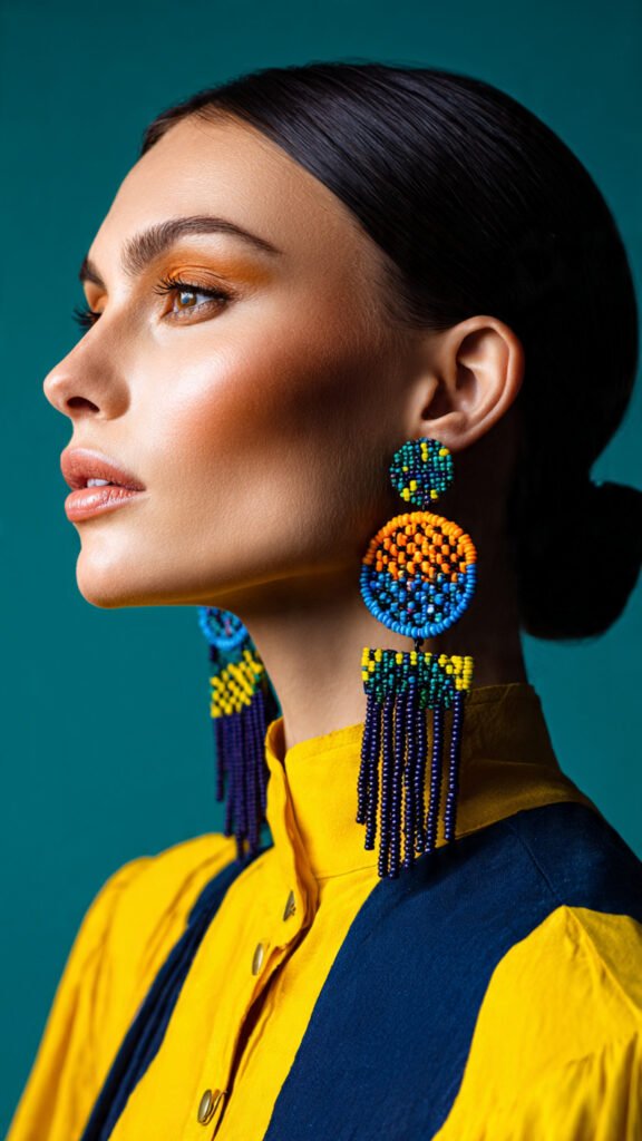 From long dangling designs to bold geometric shapes, beaded earrings are becoming more experimental. They add movement and texture, making them stand out effortlessly.