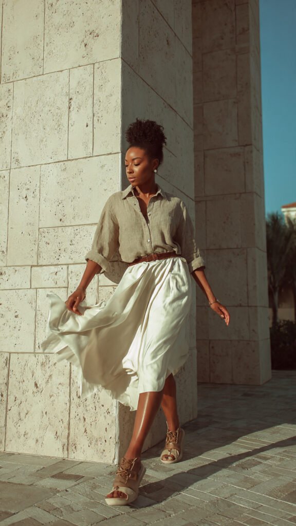 - Linen or tailored trousers