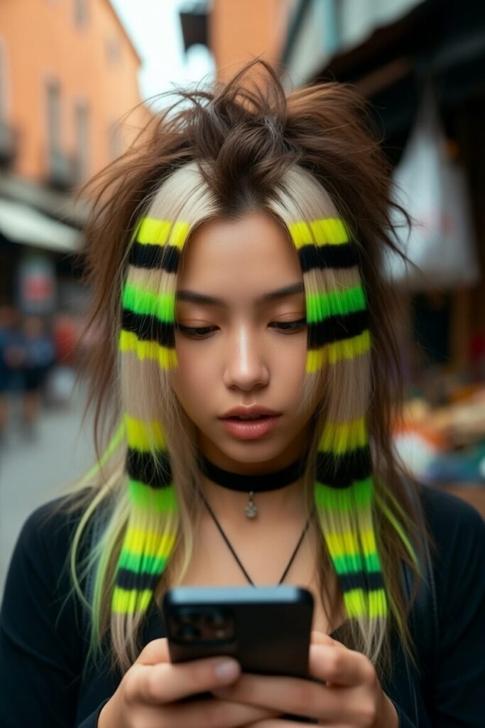 Halo hair instantly stands out because of the bold horizontal color bands.