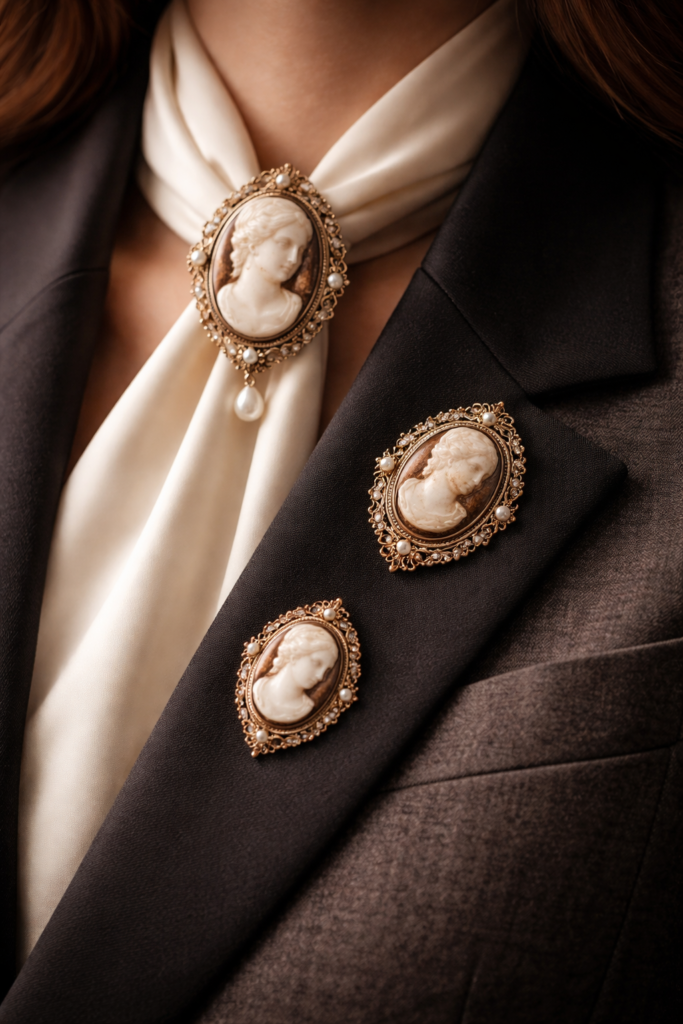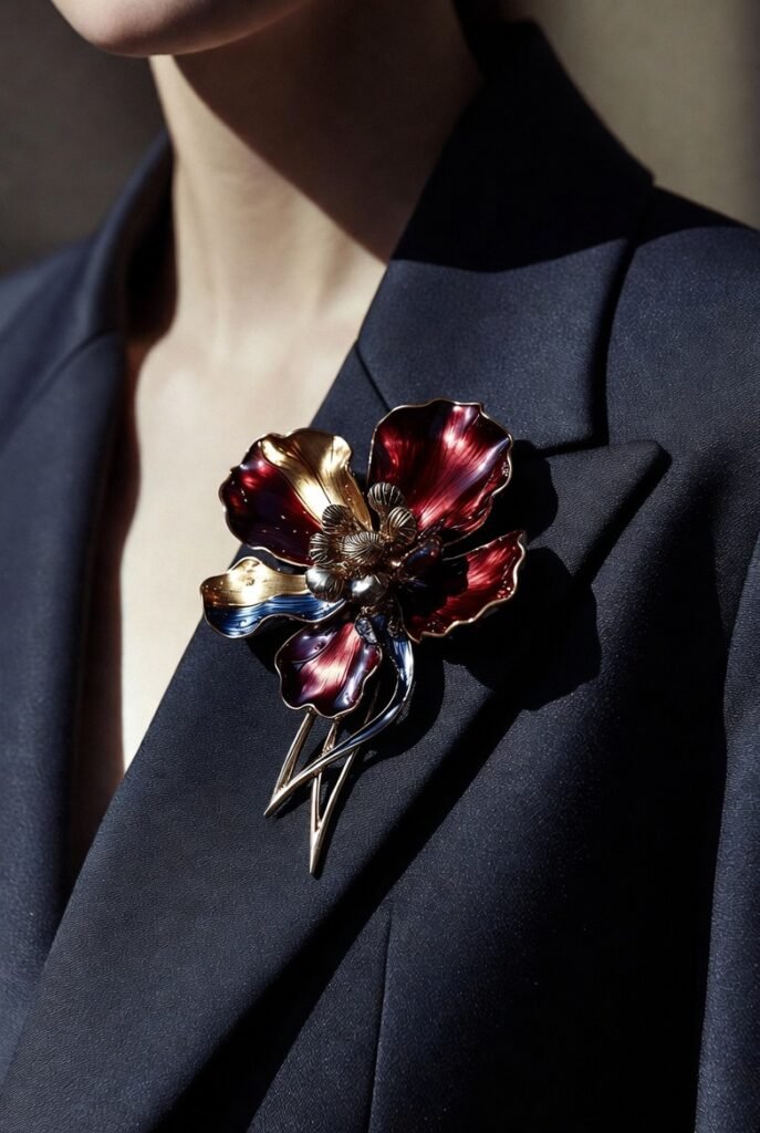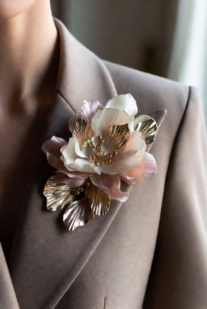 Some are even using brooches in unexpected ways, like on collars, ties, or denim, which makes them feel fresh instead of traditional.